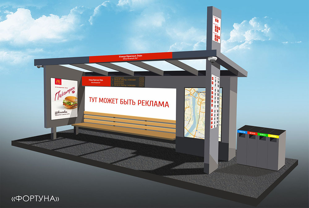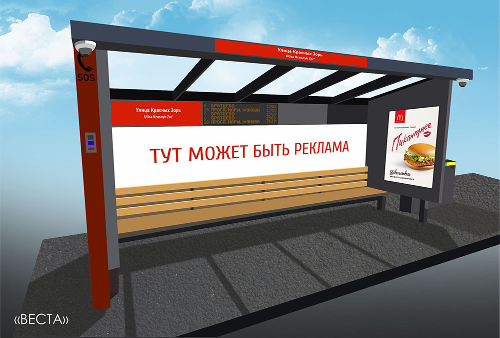 «Умная остановка» — это воплощение ИННОВАЦИИ. Умные остановки оснащены интеллектуальной информационной системой, которая позволяет получать данные о расписании следования маршрутных транспортных средств и времени ожидания. Для предоставления информации о текущем местоположении транспортного средства «умные остановки» через сервер связаны с транспортными средствами, оснащенными модулями GPS/ГЛОНАСС. Пользователи могут видеть маршруты движения общественного транспорта на специальных сенсорных табло и сделать выбор в пользу наиболее оптимального маршрута. Также данная конструкция оснащена мультимедийными экранами, на которых отображается новостная лента, рассказывающая о всех происходящих событиях в городе и не только, карта города с точками расположения городских достопримечательностей. может размещаться рекламная информация, что делает ее привлекательной для рекламодателей.